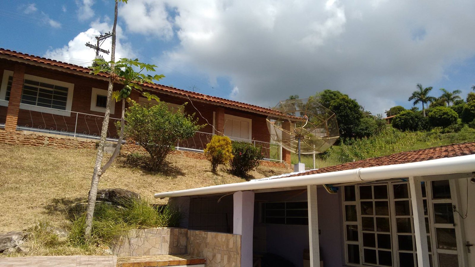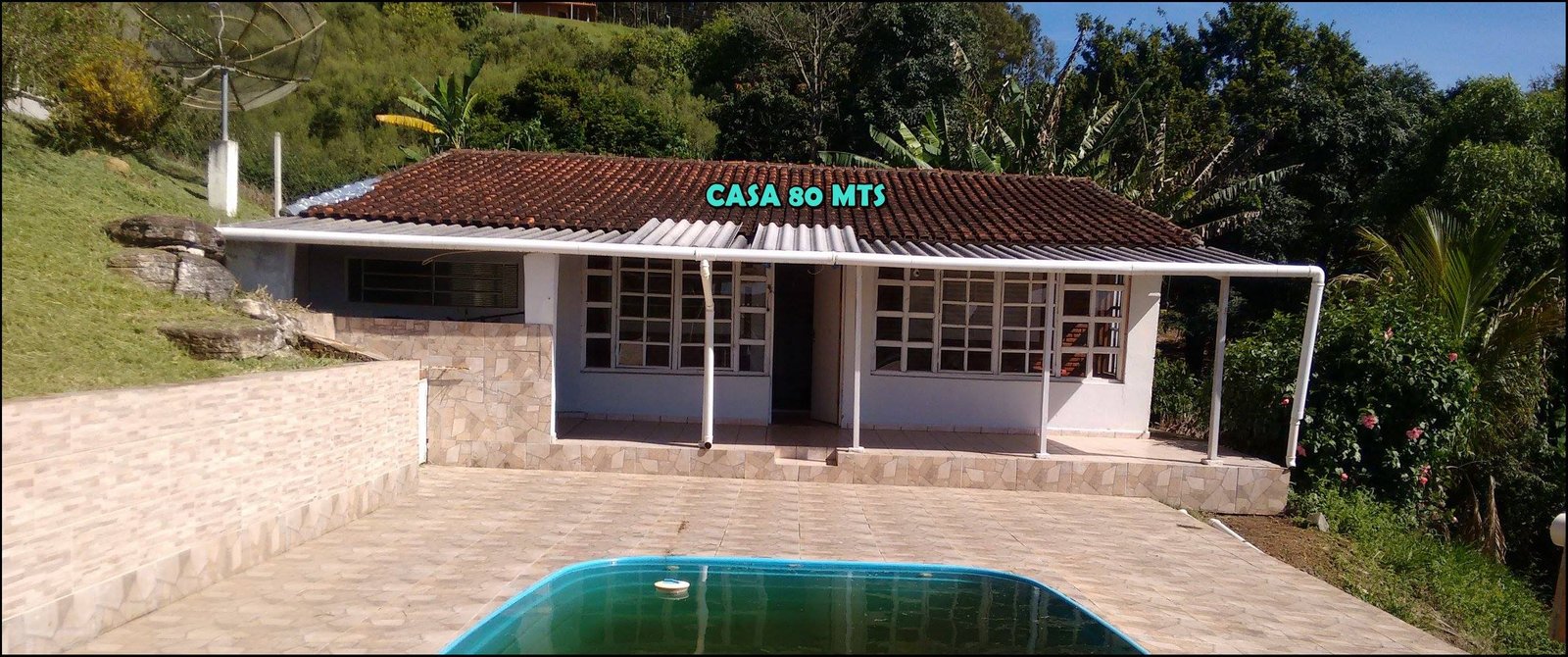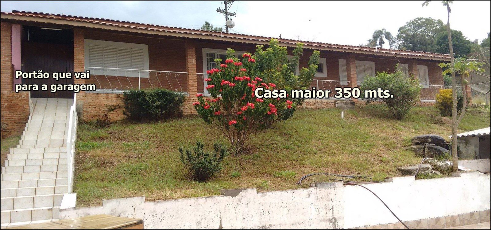 Na chácara tem 2 casas uma com 350 metros de area contruida e outra com 80 metros quadrados de area.